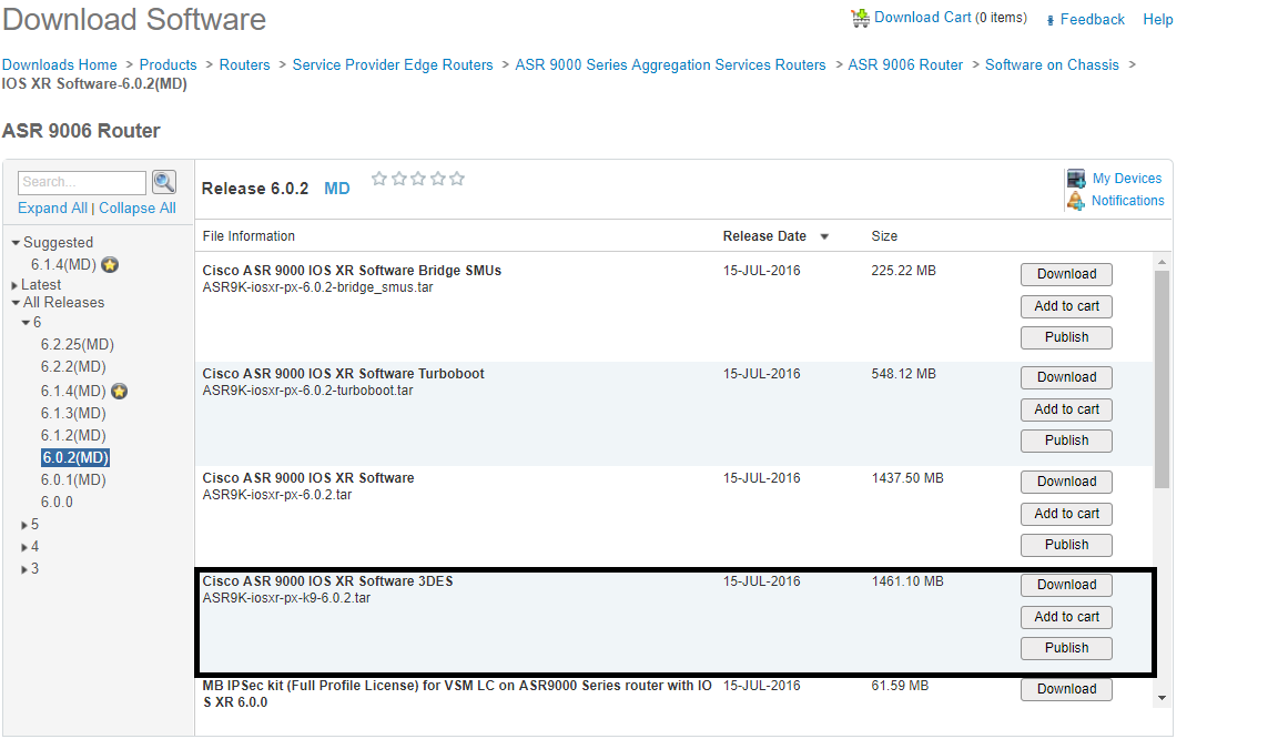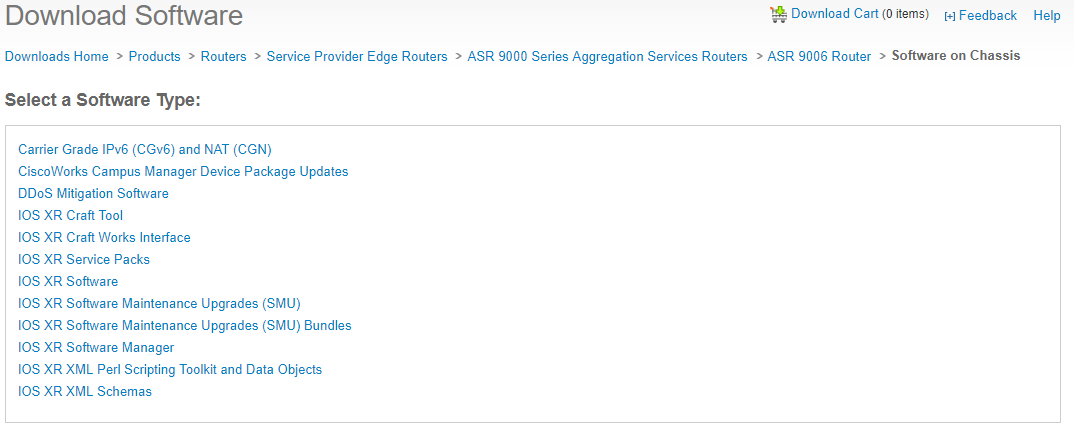 To get that software you will need to provide a link to the CVE listing the vulnerability related to your device as well as your devices serial number to TAC. Are you looking for XR 64-bit packages for release 641. Then select IOS XR Software for the main images or IOS XR Software Maintenance Upgrades SMU for patches for caveats fixes.